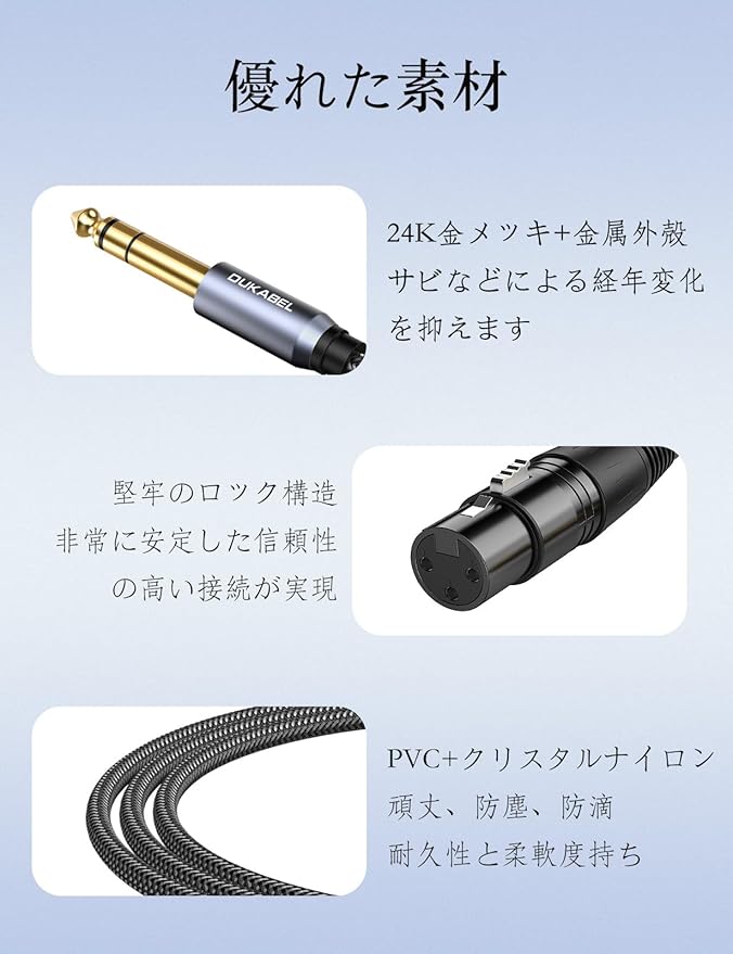 DuKabel 2.4M マイクケーブル 6.35mm 変換 xlr ケーブル 6.35mm オス to xlr メスケーブル オーディオケーブル マイク/ミキサー/アンプ/スピーカー/オーディオインターフェース等のデバイスに対応