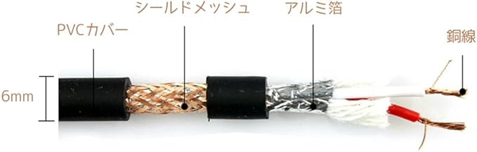 シールドはアルミホイールと高密度の軟銅線編組を2重に重ねる完璧な遮蔽構造で、純音の信号を高品質伝送することを確保、信号ロースの最小限を抑えます。