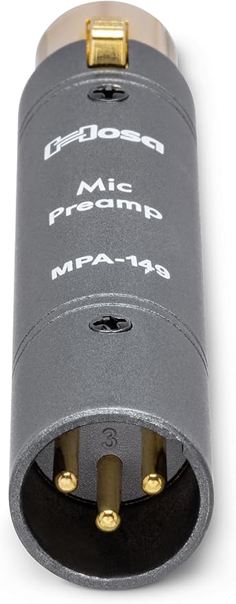 MPA-149はアクティブなインラインマイクプリアンプで、低出力のダイナミックマイクやパッシブリボンマイクに+26dBのゲインを提供します。 MPA-149 は、個別のクラスA回路設計と選択されたFET回路を利用して、クリーンな信号経路と低ノイズ動作を提供します。 コンパクトなメタルハウジングは、どんな環境でも確実に機能するように設計されています。 コンソール、インターフェイス、またはその他の外部プリアンプのゲインを増やすと、より多くのノイズが発生する可能性がある場合、MPA-149 は信号をクリーンにブーストします。 ポッドキャスター、ストリーマー、パブリックスピーカー、会場プリアンプに頼るギグのプロに最適です。 MPA-149の接続は簡単です。マイクとケーブルの間に挿入するだけで、48Vのファンタム電源を提供するミキサー、コンソール、インターフェイス、または外部プリアンプに挿入するだけです。 MPA-149はファントムパワーをパッシブマイクに通しません。