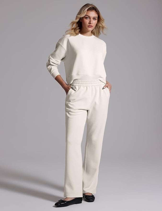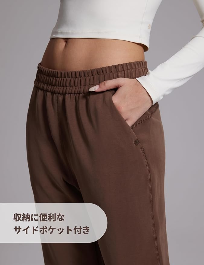 [CRZ YOGA] スウェットパンツ レディース ワイド ゆったり ハイウエスト ポケット付 引き紐付 春 秋 アジアフィット 股下28インチ/71センチ SoftAura