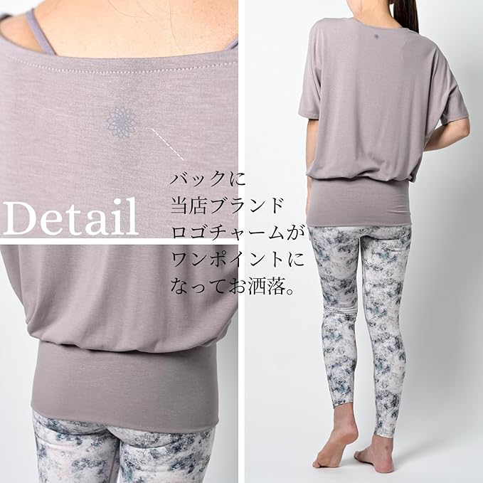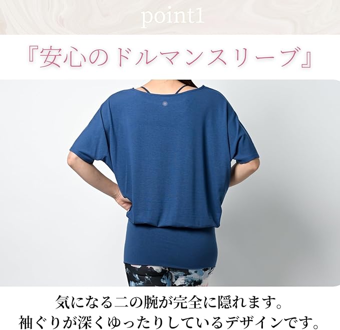 [machikaada] ヨガウェア トップス レディース Tシャツ ドルマンスリーブ ロング丈 027 丈長 ヨガ ウェア ジム フィットネスウェア かわいい おしゃれ 長め 5分袖 体型カバー