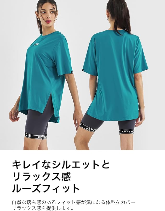 [XEXYMIX] ヨガウェア トップス 半袖 Tシャツ レディース XWFST05H2 スリット入り ルーズフィット
