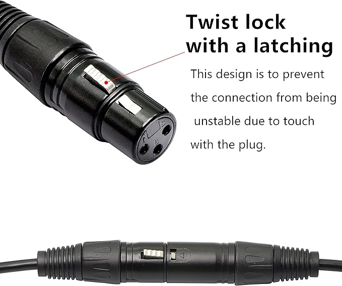 ✪ ラッチ付きツイストロック:ケーブルの端には、XRLメスコネクタにセルフロック設計が1つあります。このデザインは、プラグとの接触による接続が不安定になるのを防ぐためのものです。