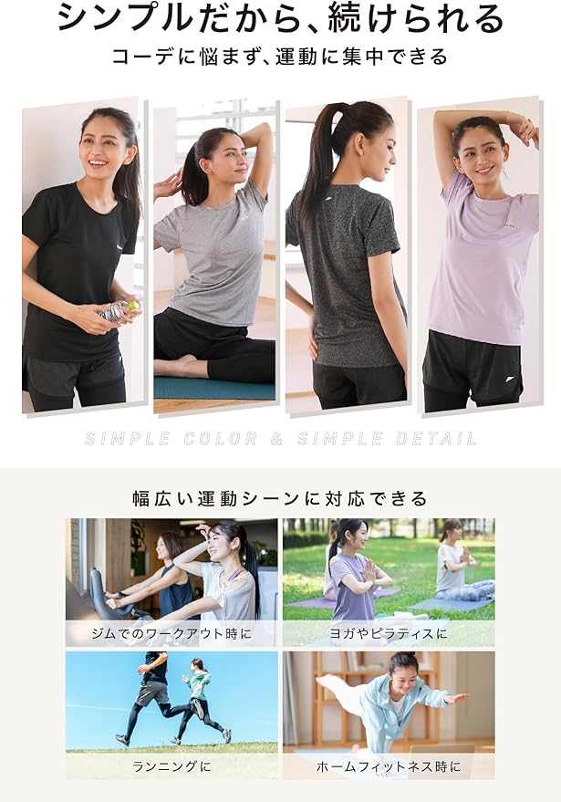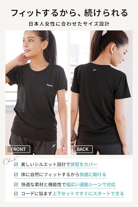 [Flexia フレキシア] ヨガウェア レディース スポーツウェア ピラティス トレーニング 上下セット セットアップ 体型カバーできる 半袖 Tシャツ パンツ レギンス 一体型 ジム 速乾