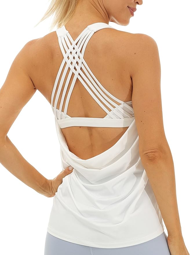 [icyzone] タンクトップ ヨガウェア トップス ノンワイヤー カップ付き 通気 速乾 キャミソール ランニング ワークアウト レディース