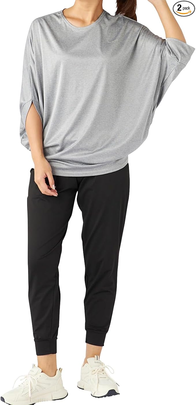 Marie claire(マリクレール) フィットネスウェア 上下セットドルマンTシャツ ルーズパンツ 344192レディース