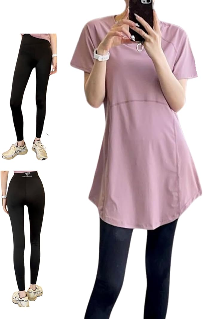 [motayu18] 安心の 体型カバー ヨガウェア セット レディース 半袖 スポーツウェア ヨガ フィットネスウェア 速乾 伸縮性 薄手 ピラティス トレーニングウェア ジム 服装 女性
