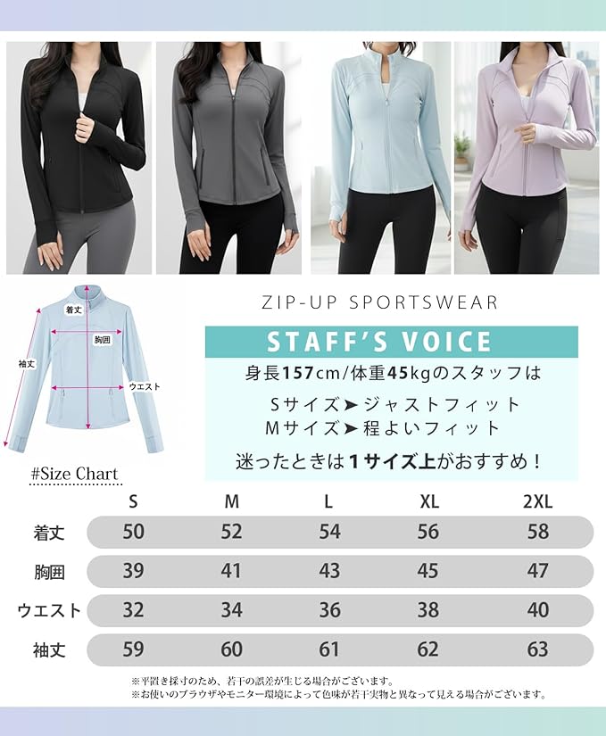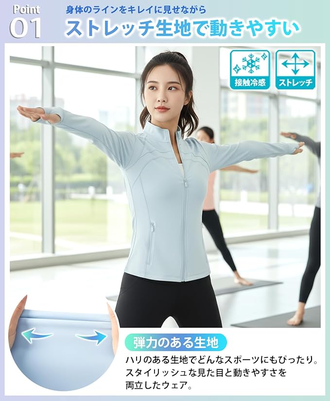 [Ranmy Stage] 【動きやすいスリムジャージ】 ヨガウェア トップス ジャケット 長袖 スポーツウェア ジップアップ ジャージ UVカット 速乾 高伸縮 フィット
