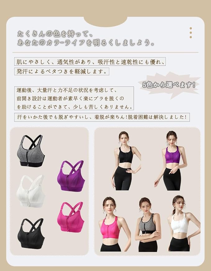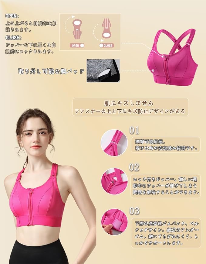 [CNYA] スポーツブラ レディース 前開きブラジャー スポブラ ブラ ヨガブラ ブラジャー トレーニング ヨガ ジム ブラ スポーツ 揺れない ノンワイヤー 吸汗速乾 ランニング ハイサポート 大きいサイズ 伸縮性 通気性 美胸美背 おしゃれ