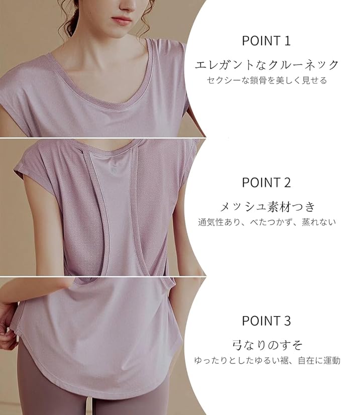 [Karsaer] ヨガウェア レディース スポーツTシャツ ゆったり フィットネスウェア トップス ストレッチ 吸汗速乾 メッシュ通気 ピラティス 美シェイプ 丈長め ジムウェア ランニング A8150 | funshop
