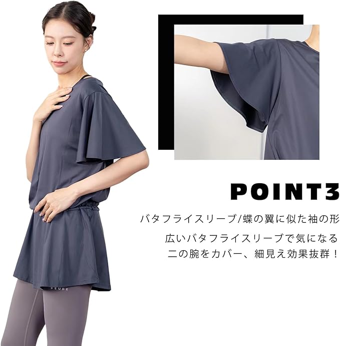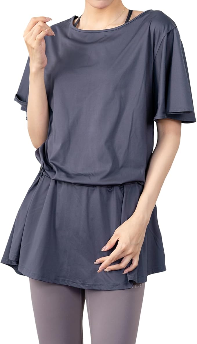 [iito.seasons] ヨガウェア 背中開き スカート トップス 丈長め ゆったり フィットネスウェア 体型カバー めくれない ロング丈 冷感シャツ 薄手 吸汗 速乾 UVカット 紫外線対策 おしゃれ 人気 | funshop