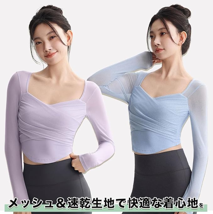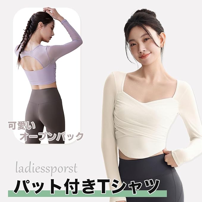 [SLINX] レディース ヨガウェア カップ付き 長袖 tシャツ トップス 背中開き おしゃれ シャツ ヨガ 揺れない 吸汗速乾 無地 軽量 快適 通気 速乾 ストレッチ スポーツウェア フィットネス YCT03