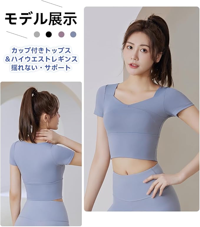 [Karsaer] ヨガウェア 上下セット レディース ピラティスウェア 半袖 スリムフィット ハイウエストヨガパンツ タイツ お腹引き締め ヨガウェア おしゃれ 通気・伸縮性 吸汗速乾 トレーニングウェア カップ付き レディース ジムウェア A0013 | funshop