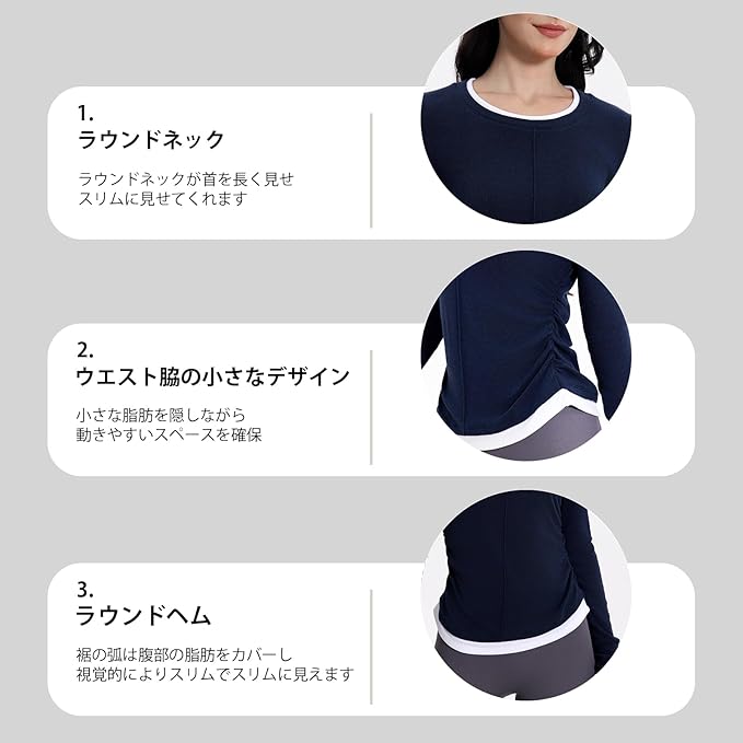 [IRCOLVE] ヨガウェア スポーツウェア レディース 長袖 ピラティス ウェア トレーニングウェア レディース ランニングウェア 冬 レディース ラウンドネック スリムフィットトップス 速乾性 | funshop