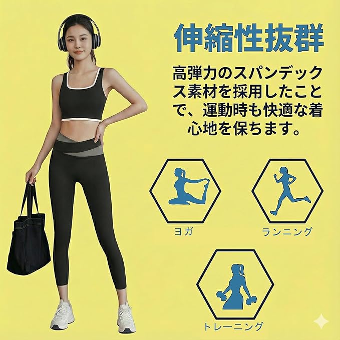 [Ghankga] スポーツブラ レディース 揺れない 上下セット ヨガパンツ ハイウエスト ヨガブラ ハイサポート ノンワイヤー ブラジャー トレーニング 吸汗速乾 伸縮性 おしゃれ 完璧な形状 快適な動き