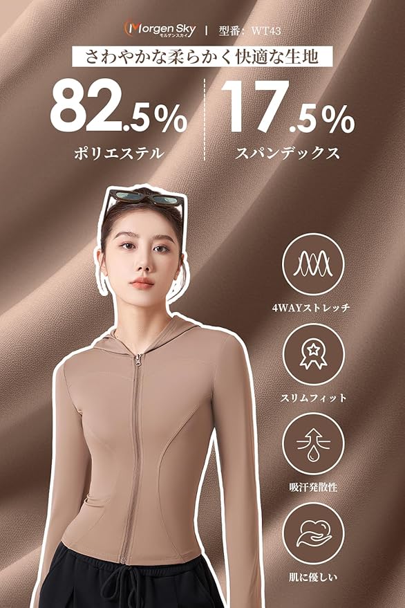 [MORGEN SKY] スポーツウェア ヨガウェア トップス レディース フード付き 長袖 ウエスト丈 ヨガシャツ ジャケット フルジップ 指穴付き パーカー ジップアップ フィットネス トレーニング 春 夏 秋 おしゃれ ロングスリーブ WT43