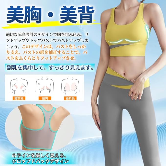 [FLYSHION] スポーツブラ レディース 揺れない ブラジャー スポーツブラジャー しっかりサポート ヨガブラ トレーニング レディース 伸張 おしゃれ 完璧な形状 快適な動き 2枚組 上下セット | funshop