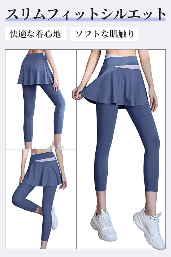 [MORGEN SKY] レディース ヨガパンツ スカート付き レギンス スコート Aライン 9分丈 スパッツ 一体型 部屋着 ジム ヨガウェア フィットネス スポーツ テニス トレーニング ハイウエスト ストレッチ 美脚 通気 速乾 CK033
