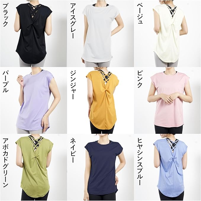 [iito.seasons] ヨガウェア レディース トップス バックデザイン 美背中 ロング丈 丈長 体型カバー Tシャツ クルーネック 半袖 ゆったり 体型カバー 冷感シャツ 無地 女性らしい スポーツ フィットネス トレーニング ルームウェア おしゃれ