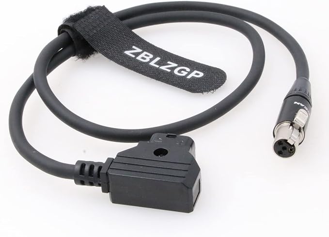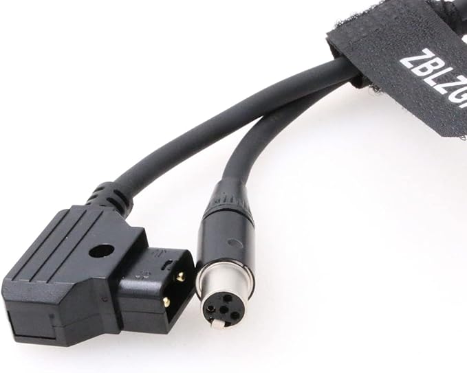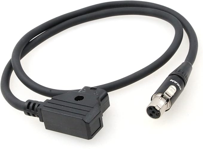 このミニ 4ピン メス XLR → オス D-Tap ケーブルは、D-Tap 電源出力に接続し、ミニ 4ピン XLR 電源入力ポートを使用するデバイスに電力を供給します。