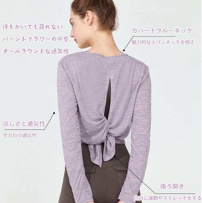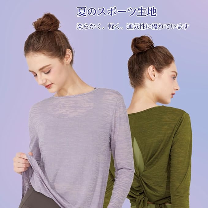 [Yodilala] レディース ヨガウェア 背中 開き 2way トップス 体型カバー 丈長ヨガ フィットネス 長袖 シャツ 吸汗速乾 ゆったり 冷感シャツ 紫外線対策 薄手 夏