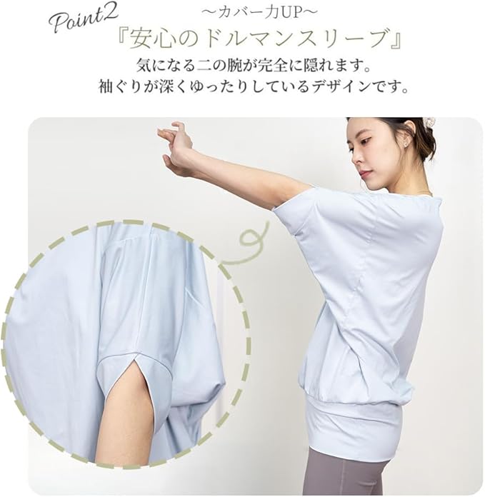 [iito.seasons] ヨガ ドルマンスリーブ ヨガウェア レディース 丈長め ゆったり トップス 体型カバー フィットネス 半袖 スポーツ フィットネス 吸汗速乾 UVカット 紫外線対策 薄手 夏 おしゃれ かわいい