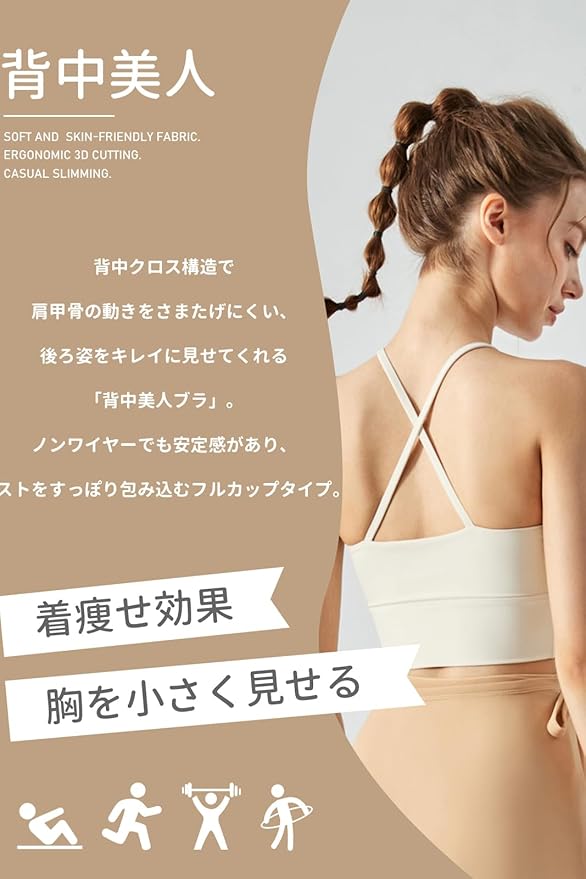 [MORGEN SKY] スポーツブラ フィットネスウェア ハイサポート 揺れない 美背 抗菌 ナイトブラ ノンワイヤー クロスバック カップ付き おしゃれ デイリー ヨガ フィットネス ランニング WX292