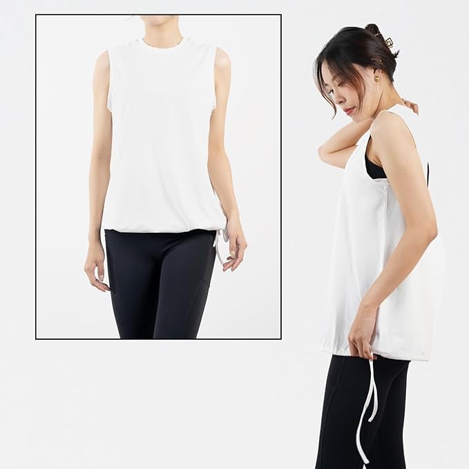 [iito.seasons] ヨガウェア レディース バックデザイン 美背中 背中開き タンクトップ ゆったり 2way トップス 体型カバー 冷感シャツ ロング丈 丈長 半袖 スポーツ フィットネス トレーニング ルームウェア 吸汗速乾 UVカット 薄手 | funshop
