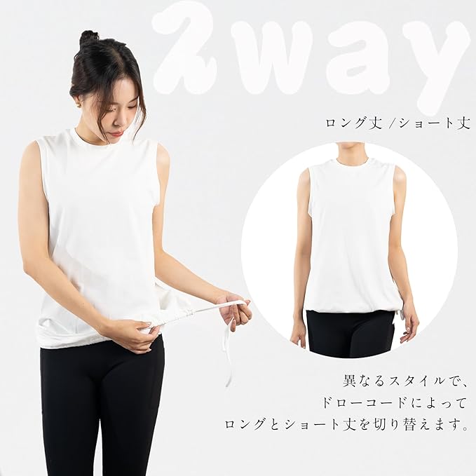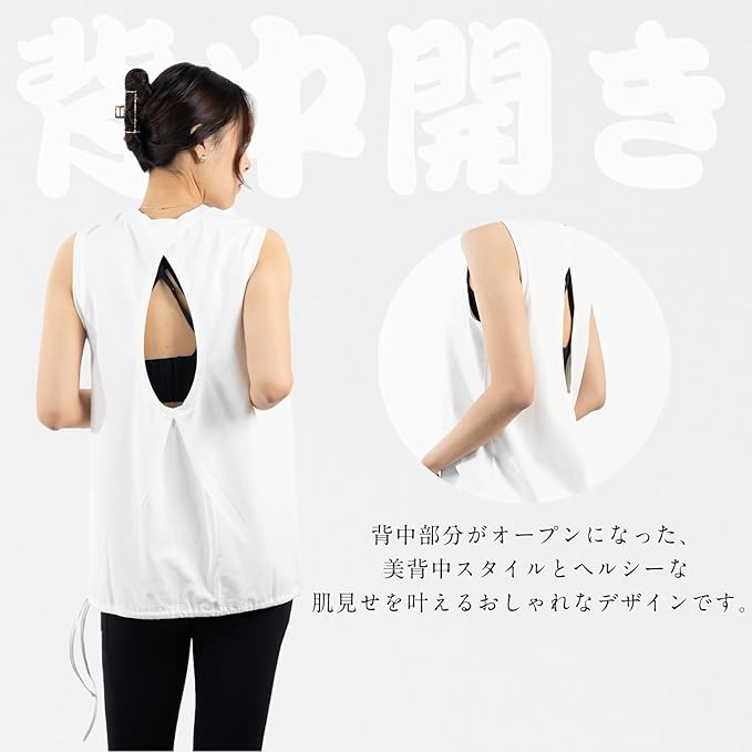 [iito.seasons] ヨガウェア レディース バックデザイン 美背中 背中開き タンクトップ ゆったり 2way トップス 体型カバー 冷感シャツ ロング丈 丈長 半袖 スポーツ フィットネス トレーニング ルームウェア 吸汗速乾 UVカット 薄手