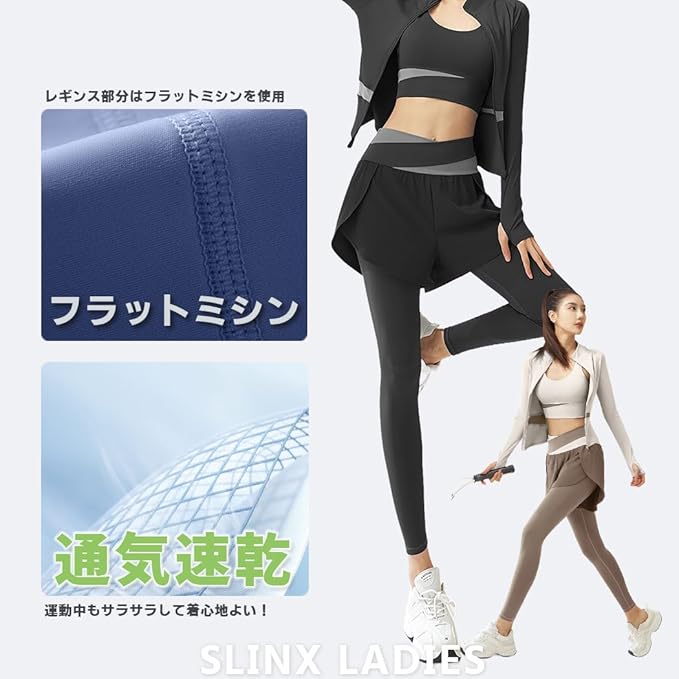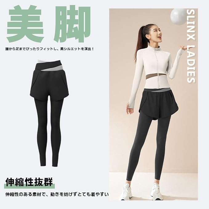 [SLINX] ヨガウェア ヨガパンツ ジョガーパンツ ショートパンツ 短パン スポーツウェア レディース レギンス スパッツ ストレッチ ハイウエスト スリム ロング 美脚 吸汗速乾 9分丈 きれいめ YJCK04