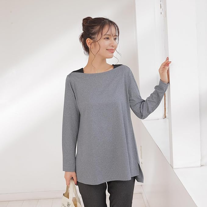 [egneL] エグネル トップス 日本製 長袖 表起毛 ストレッチ 伸縮性 ヨガ ジム サイドスリット ピーチ起毛 レディース 秋 冬 春