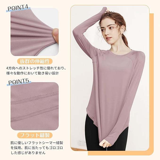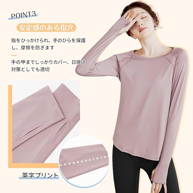[THREEGUN] ヨガウェア レディース ゆったり 長袖 スポーツTシャツ フィットネスウェア トップス シャツ ロング丈 指穴付き ストレッチ 冷感速乾