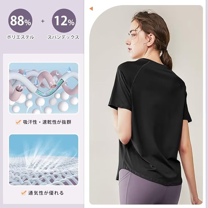 [Rovidorx] ヨガウェア トップス 半袖 tシャツ レディース スポーツ 大きいサイズ スポーツウェア ゆったり ピラティスウェア ジムウェア トレーニングウェア ランニングウェア 体形カバー UVカット 速乾