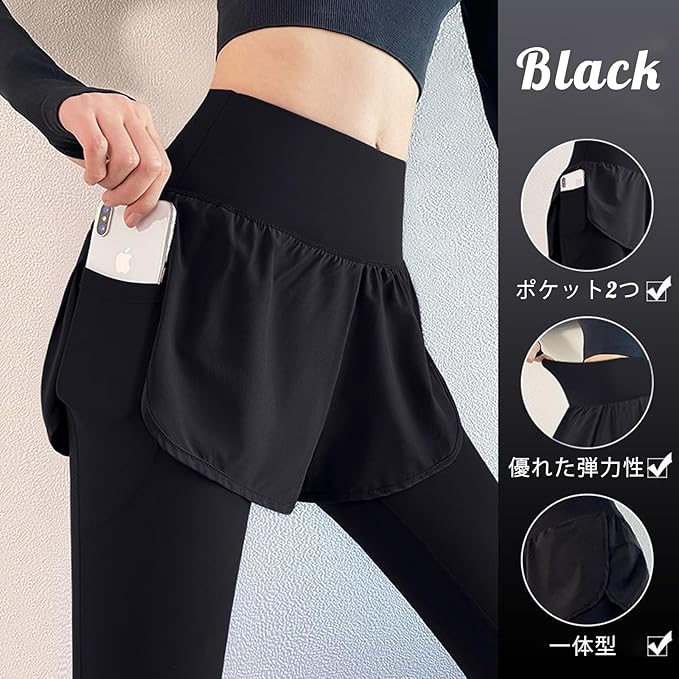 [Zleufirty] ヨガパンツ レディース ランニングパンツ レディース ポケットが2つある ヨガウェア 一体型ヨガパンツ ピラティスウェア スポーツパンツ トレーニングパンツ ランニングパンツ 美脚 ストレッチ 通気 速乾