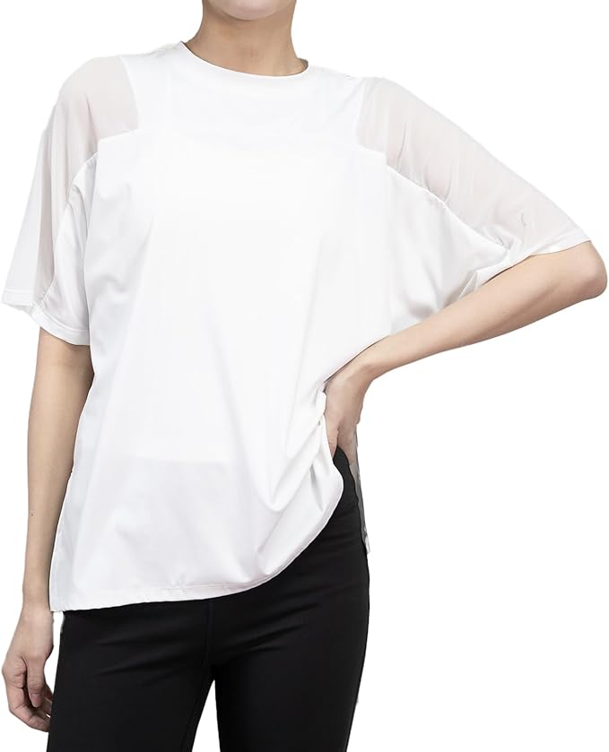 [iito.seasons] ヨガウェア スポーツシャツ 冷感シャツ メッシュ 2way ゆったり Tシャツ 半袖 レディース 体型カバー 透け感 薄手 吸汗 速乾 UVカット