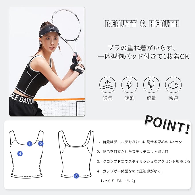 [MORGEN SKY] タンクトップ レディース ヨガウェア カップ付き スポーツウェア ブラトップ Uバック 速乾 通気 ストレッチ性 揺れない フィットネス テニス YB023. | funshop