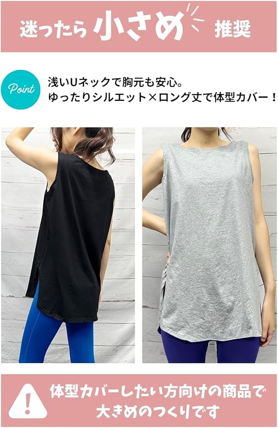 [VEROMAN] ヨガウェア ノースリーブ ヨガ トップス ゆったり ロング丈 体型カバー ピラティス ppi-nsc022v2