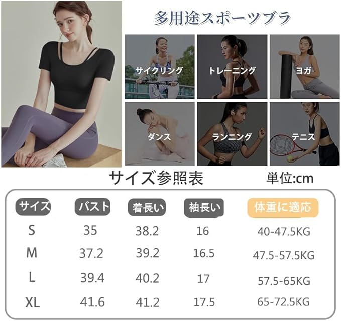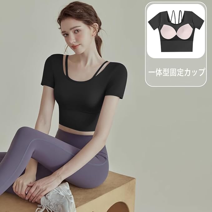 [Wzhiming] ヨガウェア トップス カップ付き 半袖 トップス エレガント ウェア ショート丈 バレエ ダンス 吸汗速乾 半袖