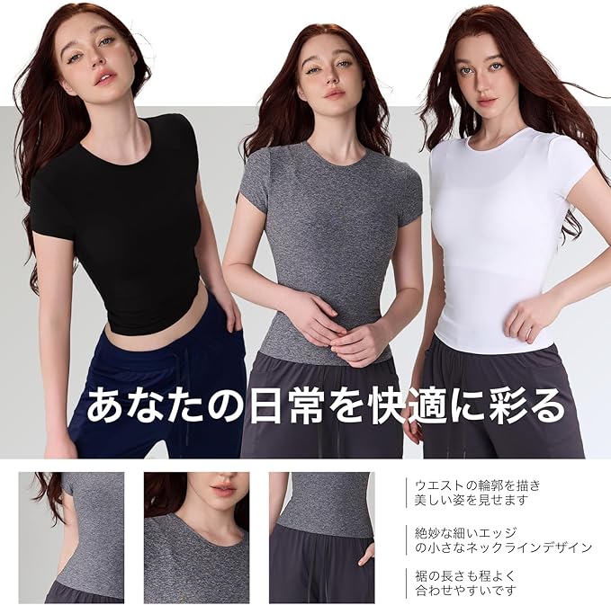 ボディフィットな半袖Tシャツ、あなたの新しいお気に入りになるでしょう!この夏、あなたのウォードローブに欠かせない1着を紹介します。[ircolve]のボディフィット半袖Tシャツです。ナイロン 91%、スパンデックス 9%素材を使用し、肌触りがとても柔らかく、心地よさ抜群です。汗を速やかに吸収し、乾燥するので、夏の暑さや汗にも快適に対応できます。シンプルなデザインには、モダンなアクセントが加えられています。ストレートなラインと丁寧な仕上げで、ボディラインを引き締め、キレイな印象を与えます。日常の着こなしはもちろん、ウォーキング、ランニング、ジムなどのスポーツシーンにも最適です。コンパクトなデザインで、持ち運びも簡単です。この[ircolve]のボディフィット半袖Tシャツで、快適でオシャレな夏をお楽しみください!