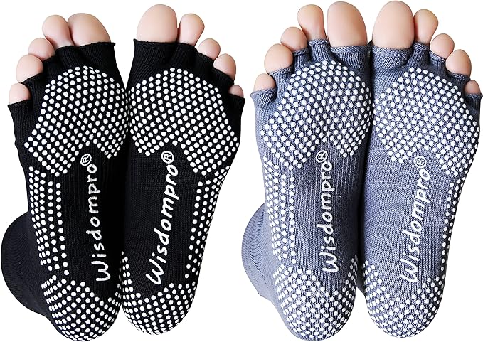 [Wisdompro] ヨガソックス 5本指 指なし 滑り止め付き ヨガウェア ヨガ靴下 スポーツ ピラティス バレエ ダンス メンズ レディース 2色2足組