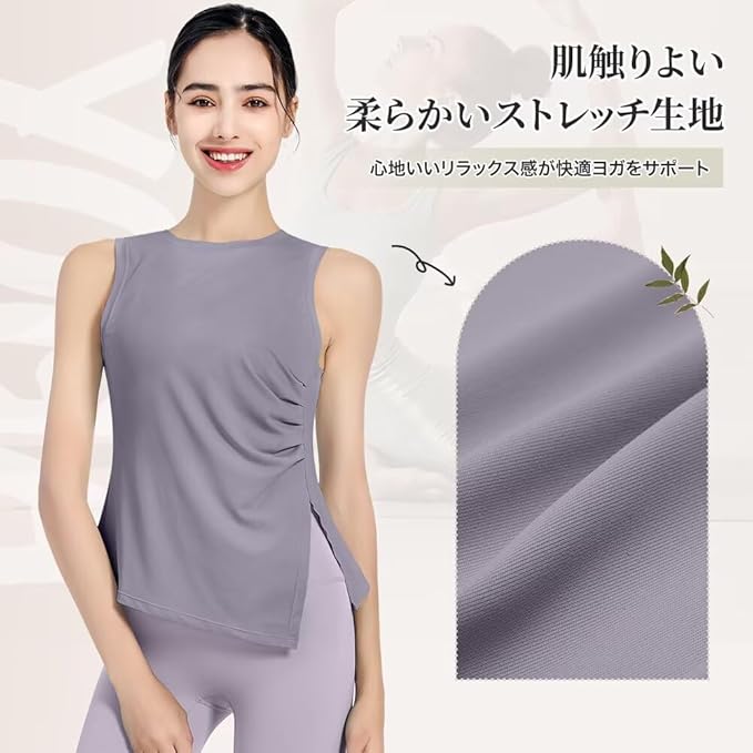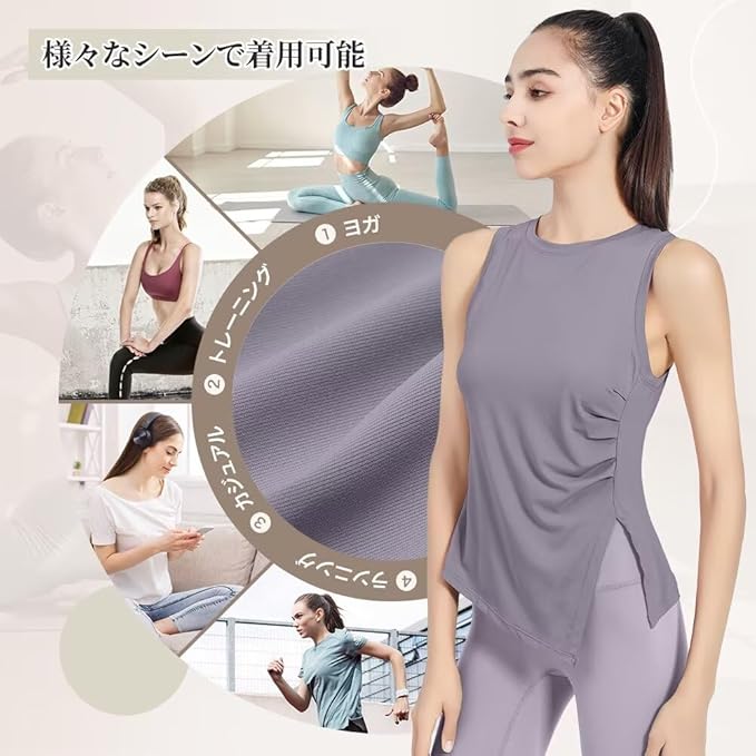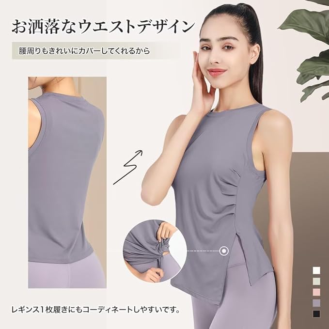 [Guooolex] レディース ヨガタンクトップ ブラック レギュラーフィット シンプル ラウンドネック ノースリーブ バンドカラー 無地 速乾 通気性 通年 タンクトップ