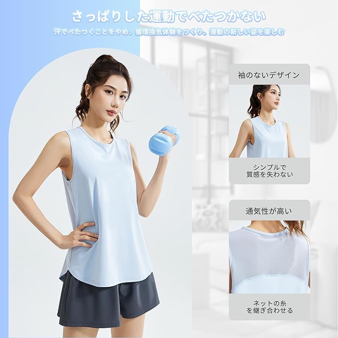 [YbiOK] ノースリーブ レディース タンクトップ – ヨガウェアとして最適な快適性とスタイル 伸縮性のあるメッシュ速乾フィットネストレーニングボディシェーピング