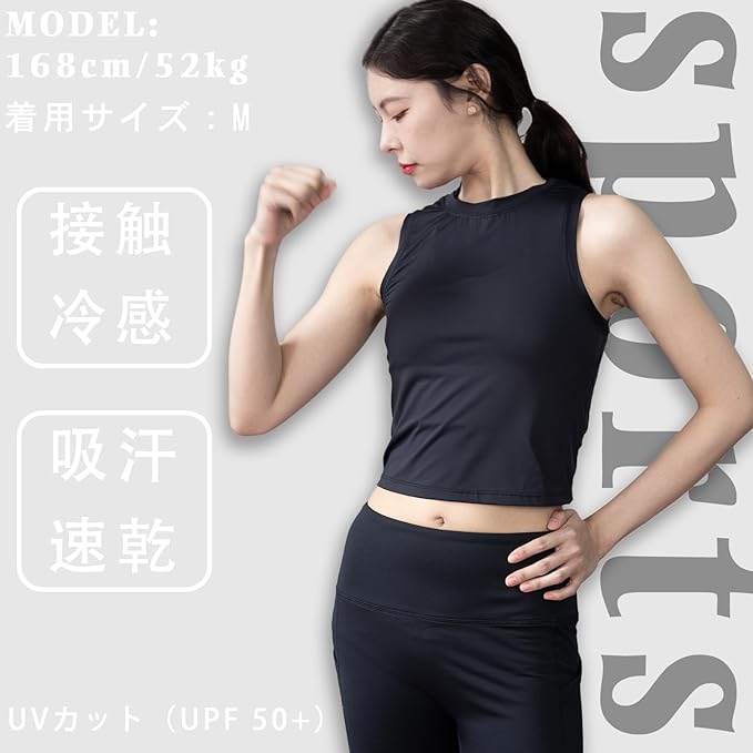 [iito.seasons] タンクトップ ショート丈 レディース ノースリーブ スポーツウェア ヨガウェア へそ出し 背中 通気 防臭 吸汗 速乾 ダンス トレーニング フィットネスクシャツ