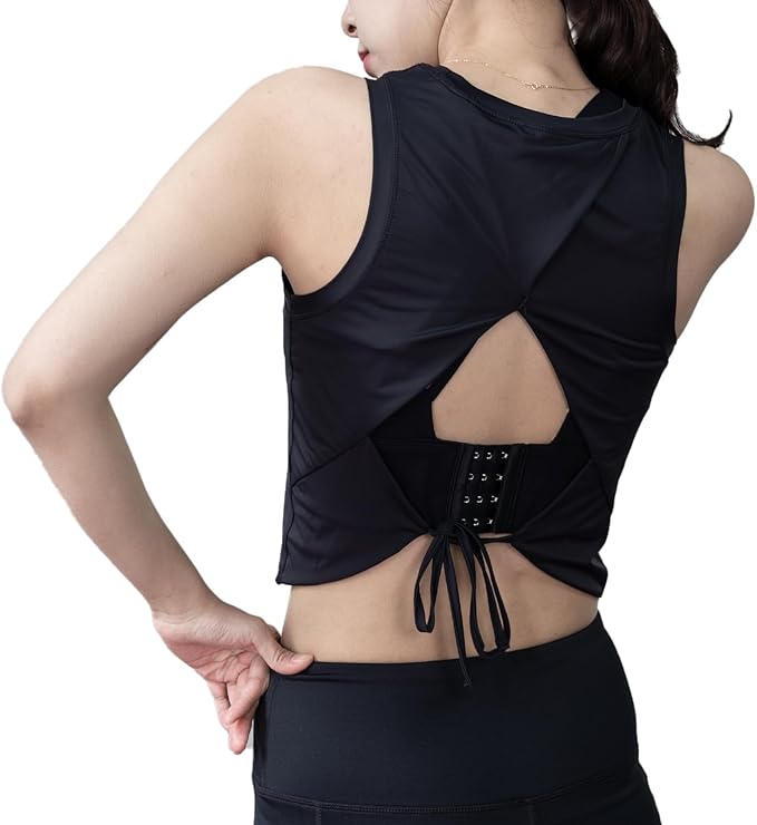 [iito.seasons] タンクトップ ショート丈 レディース ノースリーブ スポーツウェア ヨガウェア へそ出し 背中 通気 防臭 吸汗 速乾 ダンス トレーニング フィットネスクシャツ | funshop