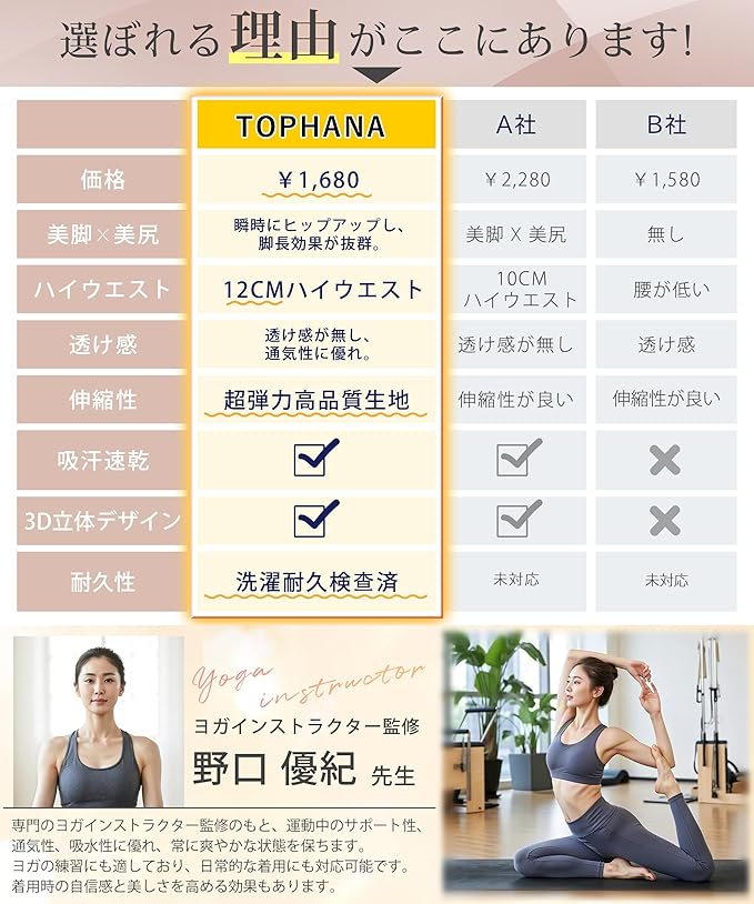 [Tophana] ヨガパンツ レディース 【ヨガインストラクター監修】【持ちフワの肌ざわり・履くだけ美脚✕美尻】 ヨガウェア ヨガレギンス レディース スポーツタイツ 9分丈 吸汗速乾 ハイウエスト スパッツ スポーツ ダンス ホットヨガ 普段着