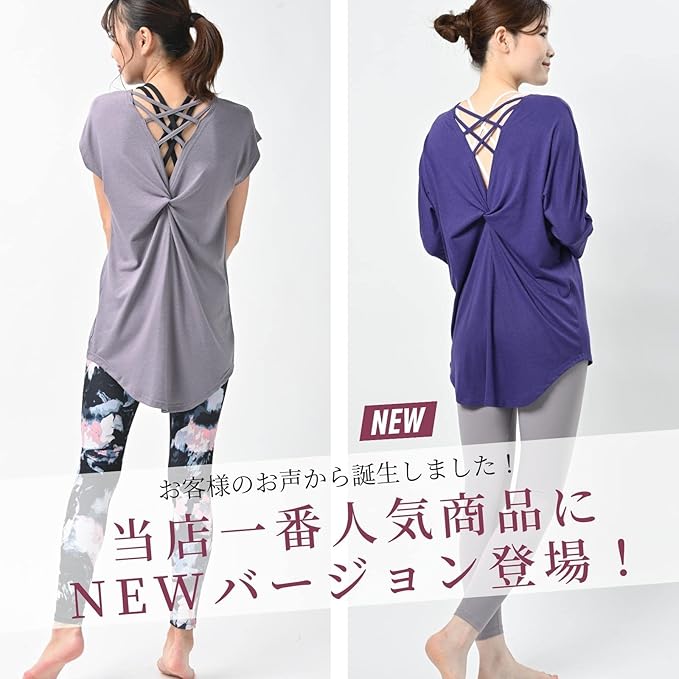 [machikaada] ヨガウェア トップス ロング丈 720 レディース 七分袖 バックデザイン 丈長 体型カバー おしゃれ かわいい