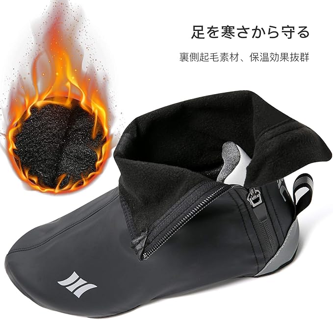 【機能仕様】防風性保温性防水性を兼ね備えたサイクリング向けシューズカバーです。寒い季節にぴったりの防寒保温シューズカバ。
