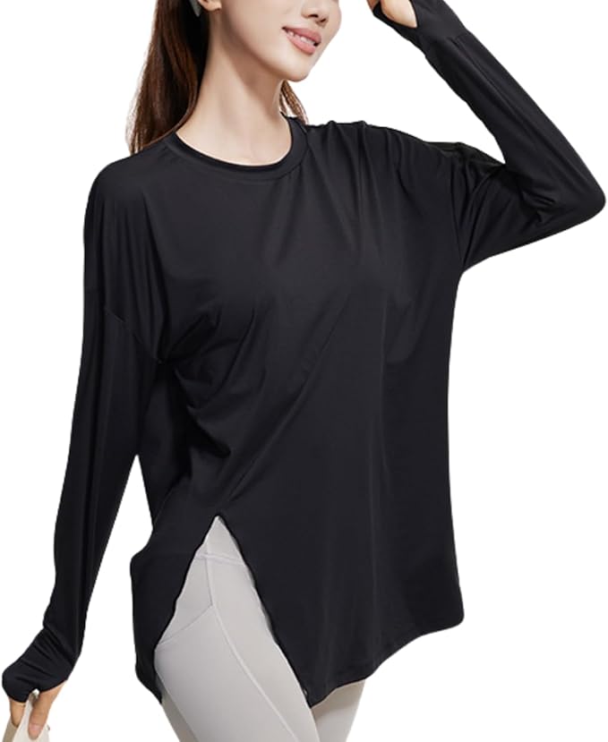 illmitato ヨガウェア トップス 長袖 (大人の女性に寄り添う 上質 フィットネスウェア) 体型カバー ロング丈 ピラティス ウェア ホットヨガ レディース