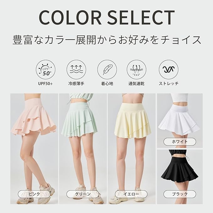 [MORGEN SKY] スカート スポーツ レディース スコート Aライン ミニスカート インナー付き UPF50+ テニス ゴルフ ジム ヨガ 夏 体型カバー UVカット 通気 速乾 フィットネス ランニング YQ220 | funshop