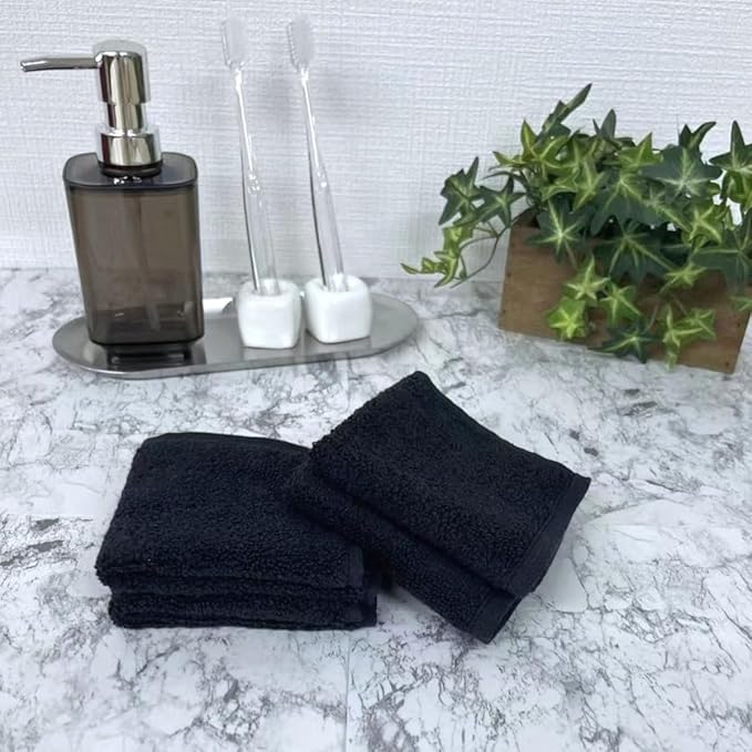 洗い替え便利な 綿100% ふわふわ 無撚糸 ミニタオル ハンカチ ブラック 40枚組 業務用(20 20㎝) 343737